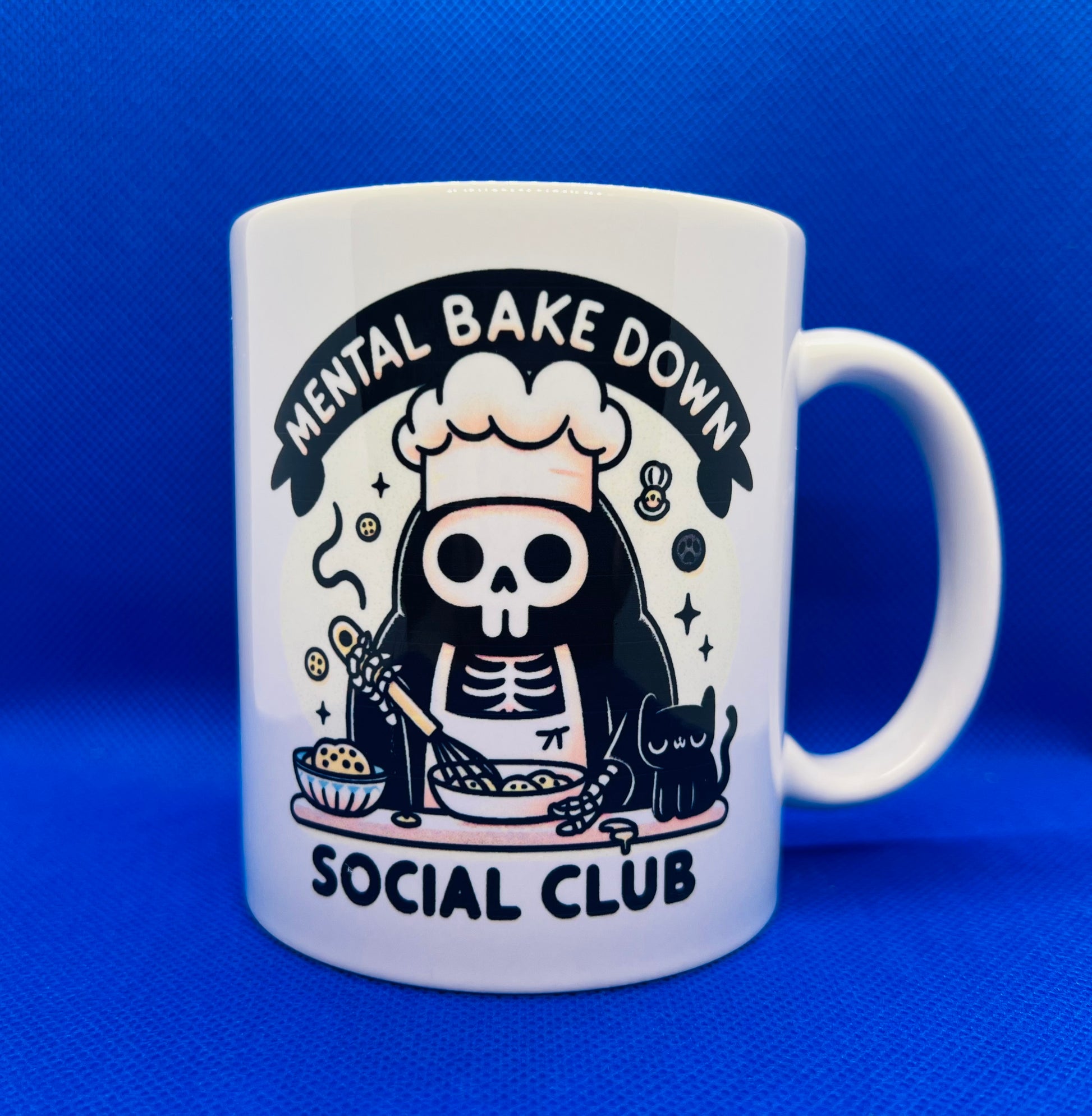 Fun cute 11 oz ceramic mug. "Mental Bake Down"
